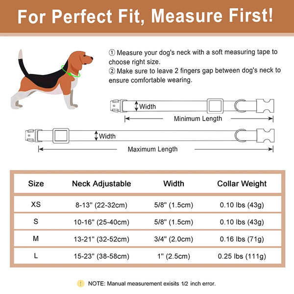 If you are choosing to buy a collar, here is the size chart for you: